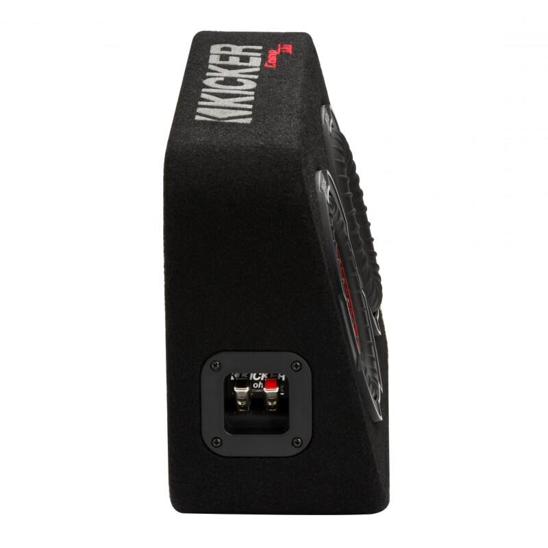 The CompRT 6-3/4-inch Subwoofer Enclosure is the easiest way to get great bass under your seat, behind your back bench or in your cargo area. It comes loaded with a reFLEX™ passive subwoofer and CompRT active sub for extremely low bass, then carpeted and loaded with a single 2-Ohm terminal.