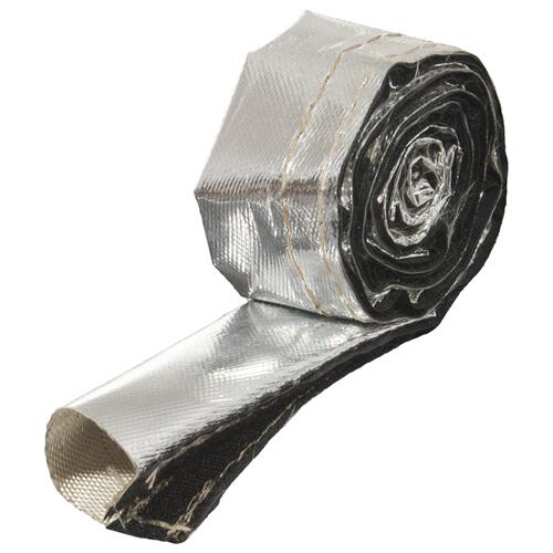Shield your wiring, lines, and cables safe from heat, without disassembling them. Thermaflect Sleeve acts as a thermal barrier capable of reflecting up to 90% of radiant heat away (requires minimum of 1" of airspace and good aiflow). It is excellent to use as a fuel line heat sleeve, on wiring looms, air intake, intercooler pipes, and air conditioner hoses. By keeping fuel and air intake temperatures cool it helps to prevent vapor lock, improves performance, improves mileage and also reduces fuel evaporation and vapor lock. Wait there is more; a 3' length our Thermaflect Sleeve weighs less than 6" of the silicone covered stuff of the same diameter. Though it weighs much less, it offers superior radiant heat protection. Thermaflect Sleeve withstands 1100-degrees Fahrenheit of continuous radiant heat and 500-degrees Fahrenheit direct heat. This fuel line heat sleeve is also available in sewn seam. Features: Capable of reflecting up to 90% of radiant heat Helps to prevent vapor lock, lower air intake temperatures, protects wires from melting Made in the USA Installation Tips: Face velcro seam in opposite direction of heat source Be sure ends of sleeve are sealed or secured to component you are trying to protect. You can seal the ends using our Thermaflect Tape, Cool Foil Tape, Thermal-Tie, shrink tube, or any mechanical fastener. Securing the ends will ensure no hot air sneaks in behind the sleeve, thus allowing it to work more efficiently. It also functions better if the heat shield sleeve is tight on the component