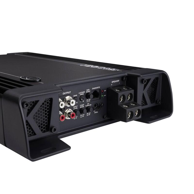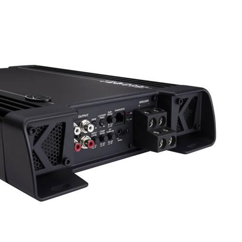 The Kicker WXA3600.1 Warhorse Amplifier is a powerhouse designed for extreme bass enthusiasts. With a full-bridge Class-D design and a robust 3600-watt RMS at 1 Ohm, it delivers unmatched performance. Its advanced cooling system with quad micro-controller-regulated fans ensures reliability even under intense use. This amplifier features a competition mode for seamless multiple amp setups and comes with premium remote bass control and a diagnostic tool for monitoring system status. Perfect for high SPL applications, the WXA3600.1 is built to deliver superior sound quality with incredible power and durability.