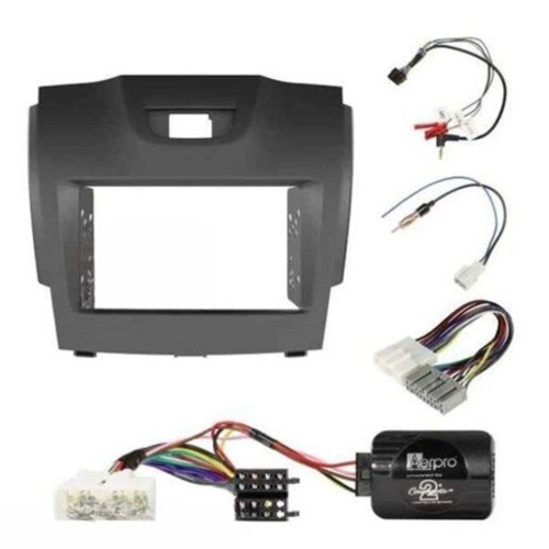 Elevate your in-car entertainment experience with the Aerpro FP8063GK Double Din Grey Install Kit, designed specifically Holden Colorado (inc.7) (2012-2016), Isuzu D-Max (2012-2020) and Isuzu M-UX (2013-2021) vehicles. This all-inclusive kit provides a seamless head unit installation solution and retains important vehicle features including steering wheel controls. Inside the box, you'll find a grey double din facia kit, metal mounting brackets, a steering wheel control interface, an adaptor for Clarion OEM nav units, an antenna adaptor and a universal SWC patch lead. Say goodbye to the hassle of hunting for individual components or dealing with complicated installations. What sets the Aerpro FP8063GK kit apart is its vehicle-specific components, which simplifies the installation process. For an even smoother experience, we recommend pairing it with the Aerpro APP8 or APP9 Series Head Unit Secondary ISO Harness (available separately).