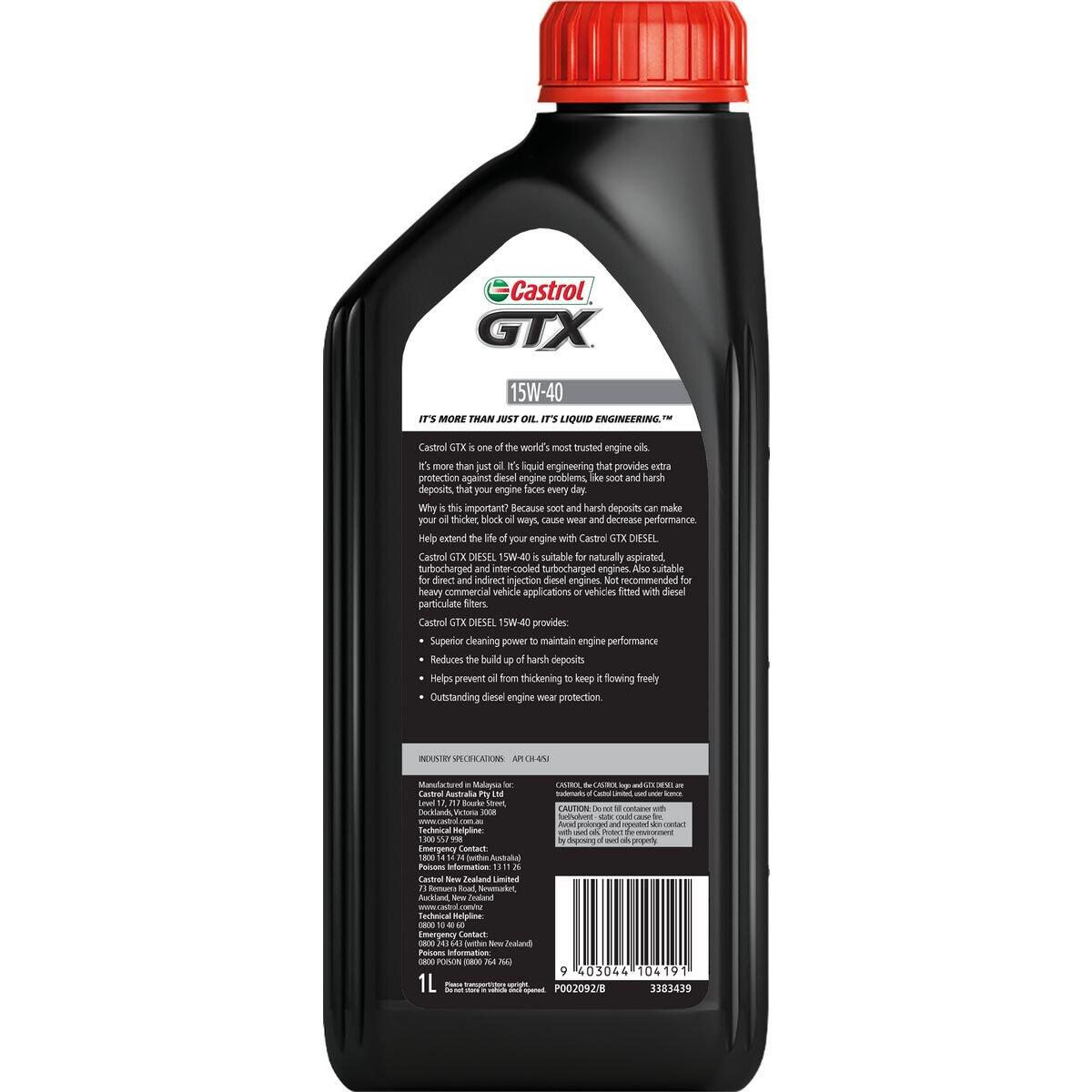 Introducing the CASTROL 15W40 - GTX DIESEL - 1L, a top-quality engine oil by CASTROL designed for diesel engines. Ideal for drivers looking to enhance their engine performance and protection. The GTX Diesel formulation ensures optimal engine lubrication and performance in various driving conditions.