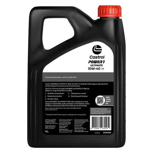 At Hyper Drive, We are committed to offering the best prices on all our products. If you find a lower price for CASTROL 10W40 - POWER 1 ULTIMATE 4T - 4L elsewhere in New Zealand, WE’LL BEAT IT BY 10%. That’s Our Price Beat Guarantee