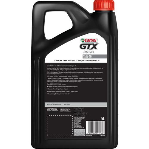 Order online today from Hyper Drive and experience the quality and reliability of CASTROL 15W40 - GTX DIESEL - 5L.