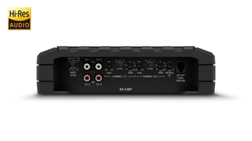The Next-Gen Alpine S-Series S2-A36F 4-Channel Amplifier is Hi-Res Audio Certified and able to reproduce up to 40kHz frequency response. This ultra-wide bandwidth coupled with the elevated S-Series design brings out a new benchmark for entry-level performance and price.