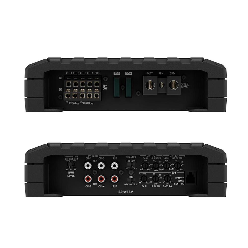 With its versatile 5-Channel design, the S2-A55V Amplifier is the perfect solution to power your sound system all in a single chassis. This amplifier delivers crisp and clear audio to up to four speakers plus an additional subwoofer to give your system a complete audio upgrade.