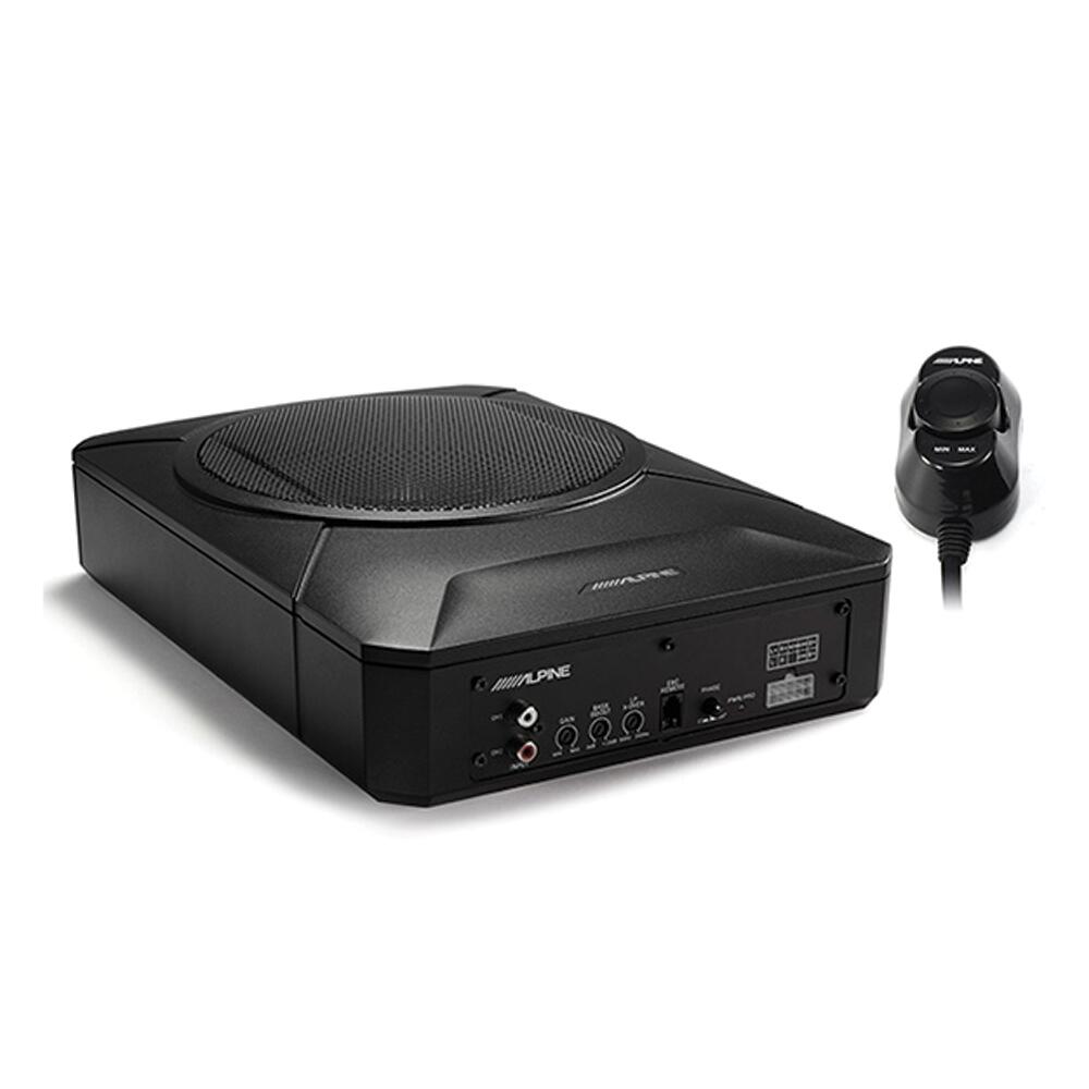 The Alpine PWE-S800 is a compact, powered 8-inch subwoofer designed to deliver powerful bass in tight spaces. With a 240W peak power output and a dual voice coil woofer, it enhances your car audio system without occupying much room. Its slim profile makes it ideal for under-seat or limited-space installations. The all-aluminum alloy body ensures durability and a sleek appearance, while the included wired remote allows for easy bass level adjustments to suit various music styles. Installation is straightforward, making it a convenient upgrade for those seeking enhanced sound quality in confined spaces.