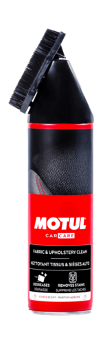 MOTUL® Fabric & Upholstery Clean cleans and removes stains from upholstery. Specially formulated to protect textiles and carpets. MOTUL® Fabric & Upholstery Clean leaves a pleasant scent.