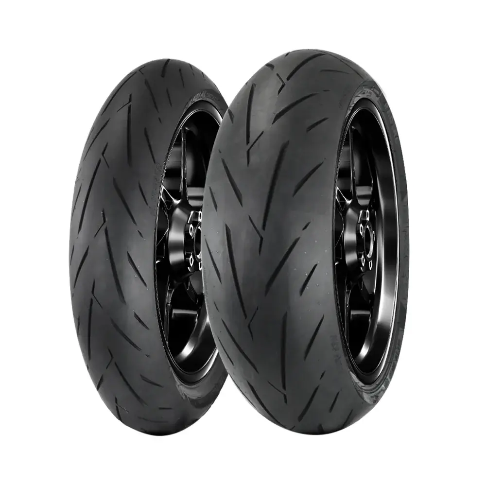 - Special compound provides excellent dry and wet grip; dual-compound on rear guarantees high durability and enables nimble handling and stability when cornering
