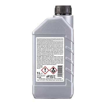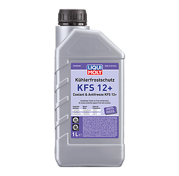 Clean the cooling system with LIQUI MOLY Radiator Cleaner (part no. 3320). Then empty this and rinse with plenty of water. Fill with Coolant & Antifreeze KFS 12+ and water according to the mixing table and the manufacturer’s instructions. We recommend distilled water for this. Depending on water hardness and quality, dilution with tap water is also possible. Disposal according to the local regulations. Change interval according to manufacturer's instructions. Store undiluted only. Miscible with coolants based on ethylene glycol.