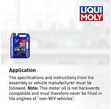Note: This motor oil is not backwards compatible and must therefore never be filled in the engines of “non-WIV vehicles”.