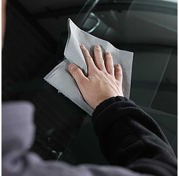 2. Pour Fix-clear Rain Repellent on a clean paper towel and apply under pressure with circular motions.