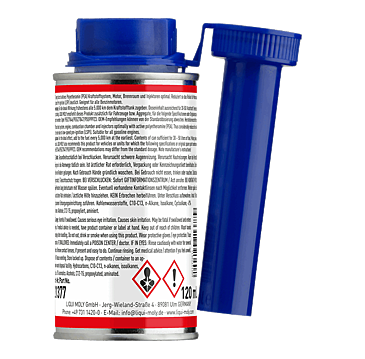 120 ml can formulated for 30 – 50 l of fuel. For the ideal effect, add to the fuel every 5,000 km at the earliest. Mixing takes place automatically.