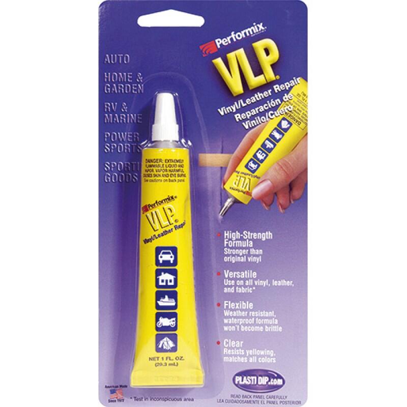 VLP is a clear, high strength leather and vinyl repair designed to mend small rips, tears, and holes in most types of vinyl and leather materials. A repair made with VLP is stronger than the original vinyl or leather material. For use on all vinyl, leather and some fabrics.