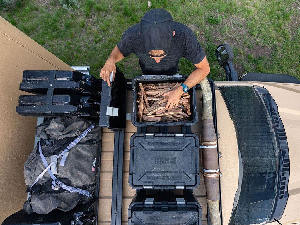These plastic, workable-sized storage boxes are designed to fit on your roof rack or can be easily arranged in a vehicle’s cargo bed. They are vertical-sided to avoid wasted space and stack securely thanks to an innovative nesting design.