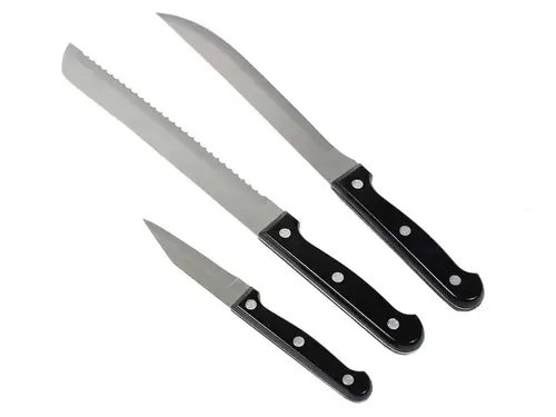 Triple riveted knife handles with double riveted fork and spoon handles.