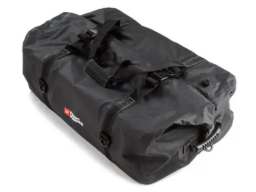 - Roll-top style bag with sonically welded seams is 100% water and dust proof.