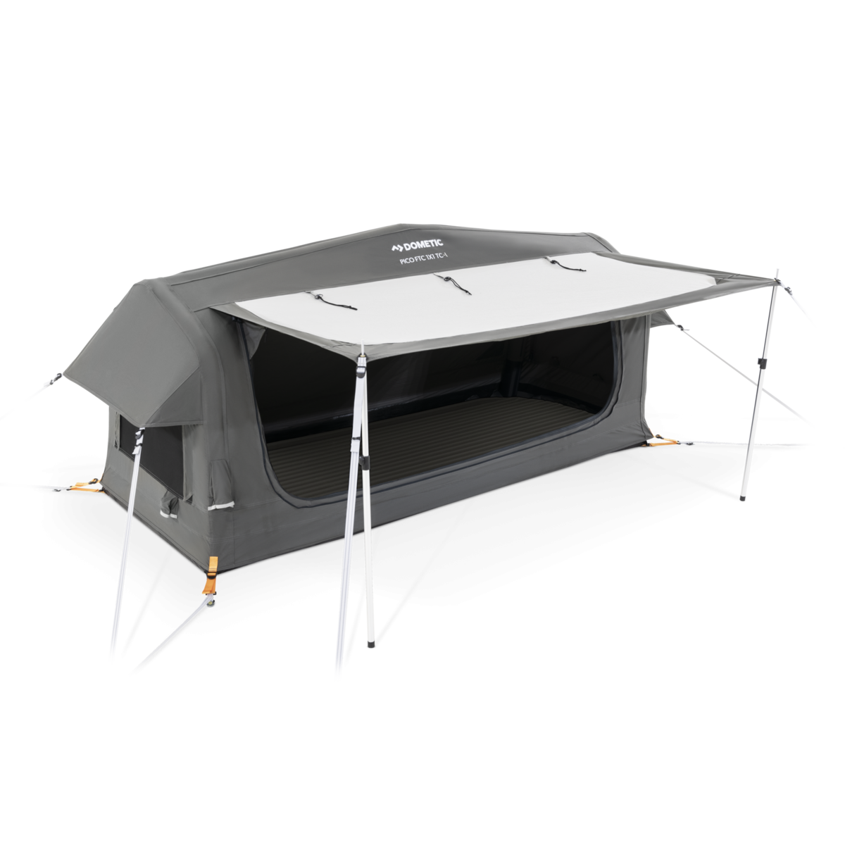 The Dometic Pico FTC 1x1 TC-I is a compact swag-style camping tent designed for quick overnight trips and easy touring. It features Air Frame Technology, an integrated inflatable mattress, and a portable backpack-style carry bag.
